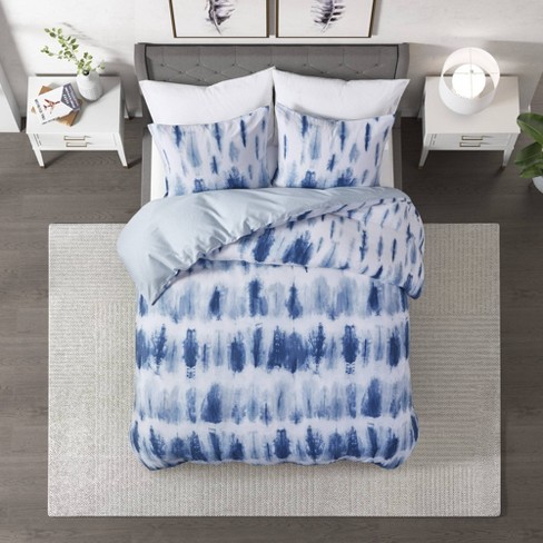3pc Full Queen Tie Dye Cotton Printed Duvet Cover Set Blue Cosmoliving By Cosmopolitan Target