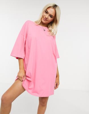 Asos Design Tall Oversized T Shirt Dress With Pocket Detail In Hot Pink Asos